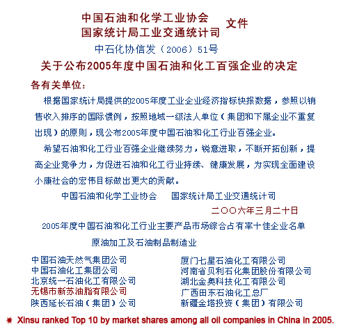 Wuxi Xinsu Lubricants Co,.Ltd Add:Huaqing Road Puzhang Bridge.Wuxi.Jiangsu.China Tel: 0510-85413378 Fax:0510-85628050 P.C:214124 Web:cdrissun.cn
